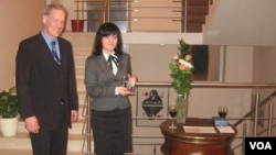 En Minsk, el día 8 de marzo, Micheal Scanlan, encargado de negocios de la misión diplomática de Washington organizó un homenaje para las mujeres, y en el acto hizo entrega a Nasta del premio. Tiene ella un claro compromiso con la promoción de una sociedad civil en Bielorrusia, dijo Hillary Clinton en el acto de Washington D.C., y declaró además que ella ha manifestado un activismo político y coraje, que dan esperanzas en el futuro del país y en su inserción final en el continente.